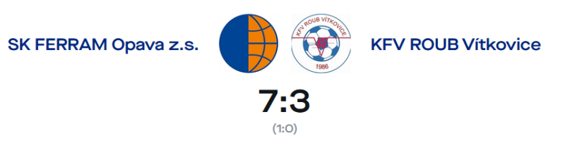 SK FERRAM Opava : KFV ROUB Vítkovice 7:3 (1:0)